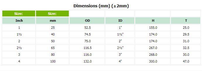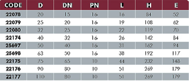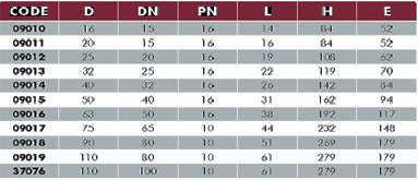 | Dia | Code | DN(mm) | D(mm) | D1(mm) | D2(mm) | L(mm) | L1(mm) | H(mm) | Kg/Pie | Pcs / Box | PN |