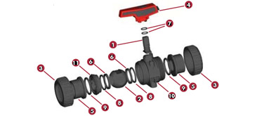 • Ball seat in HDPE & PTFE.